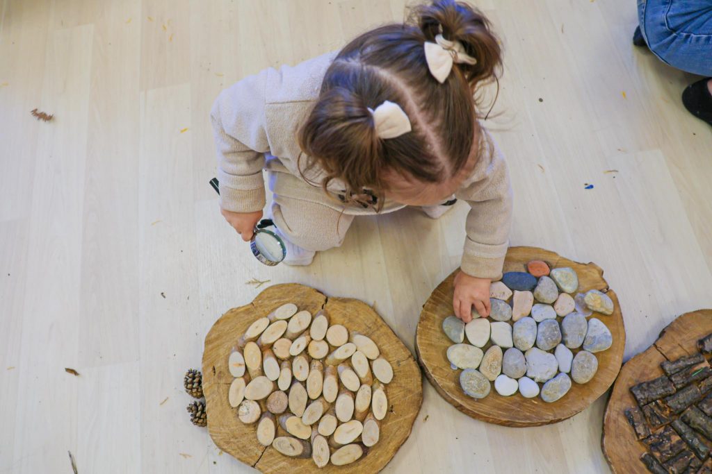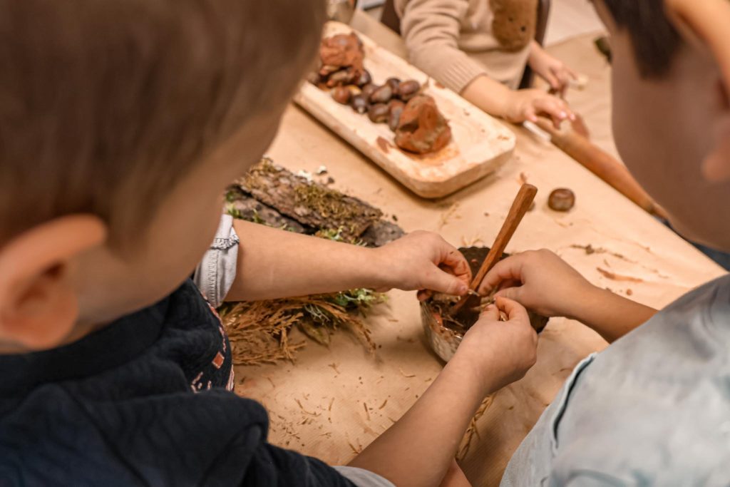 Tout au long de l’atelier, les propositions artistiques se sont entremêlées et enrichies mutuellement. L’argile invitait au modelage, au toucher de la terre et à la libre expression de l’imaginaire. Le land art permettait de composer avec ce que la nature offre : feuilles, branches, cailloux ou plantes devenaient supports de création. Les « mini-mondes », quant à eux, ouvraient la porte à des histoires inventées, peuplées de petits personnages et de paysages rêvés.