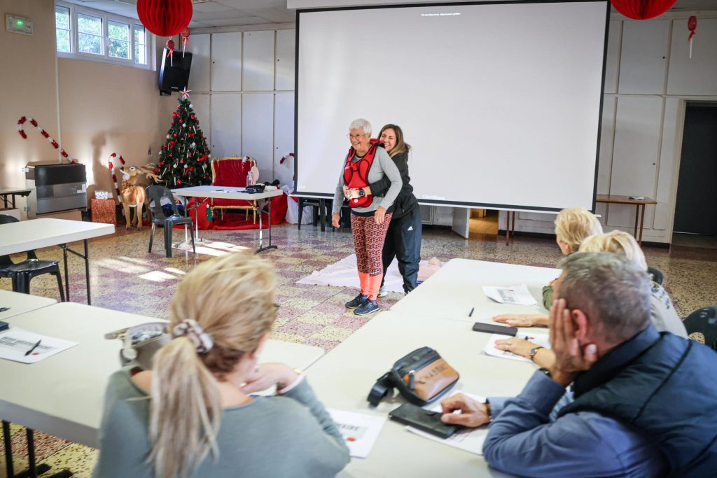 Au-delà de la prévention, les participants ont pu s’initier à des gestes simples mais essentiels : massage cardiaque avec défibrillateur, appel des services de secours ou encore utilisation du smartphone en cas d’urgence. Autant d’outils pratiques pour renforcer la confiance et l’autonomie face à une situation imprévue.