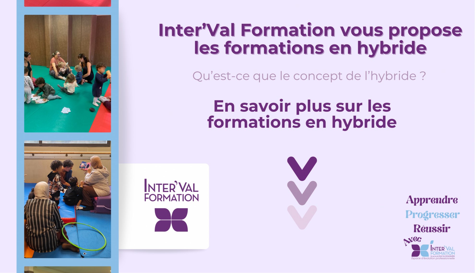 Inter’Val Formation, développe et propose des formations toujours plus proches des réalités du terrain. C’est dans cet esprit que des formations hybrides sont développées, une approche innovante qui allie théorie et pratique pour un apprentissage complet, vivant et concret.